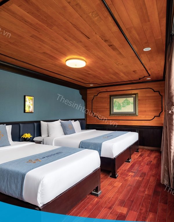 Du thuyền Lan Hạ 4 sao Lapandora được thiết kế sang trọng và tiện nghi, mang đến cho bạn một không gian sống cao cấp giữa vẻ đẹp tuyệt vời của Vịnh Lan Hạ. Những căn phòng rộng rãi và thoáng đãng sẽ mang đến cho bạn sự thoải mái và tận hưởng tuyệt vời trong suốt hành trình du thuyền.