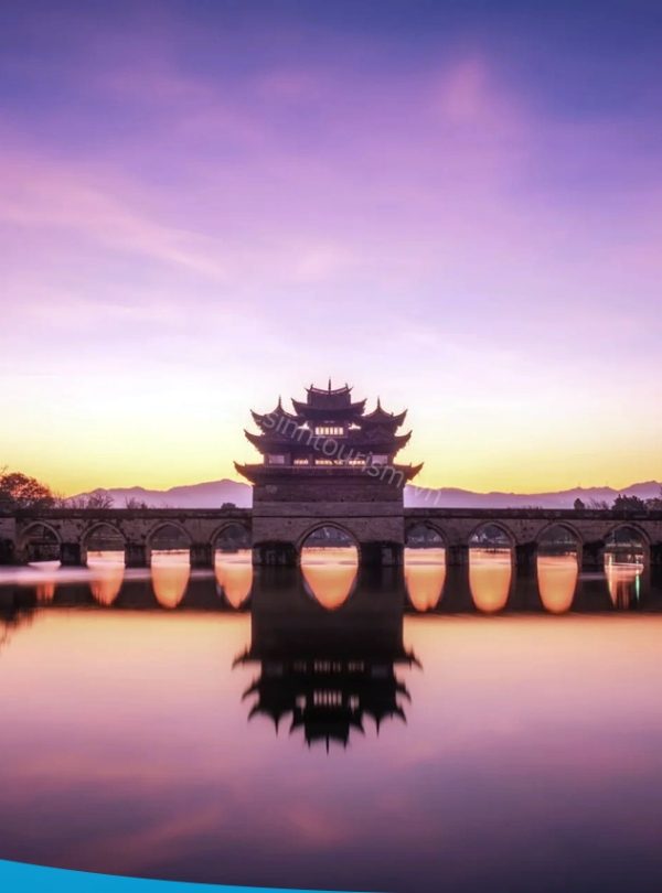 Trưa: Đoàn Ăn trưa tại nhà hàng. Sau khi ăn trưa đi Kiến Thủy thắm quan Chu Gia Hoa Viên (1 tiếng), đi thăm quan thành cổ Kiến Thủy nghìn năm, đi dạo phố Minh Thanh, ngắm nhìn tham quan Triều Dương Lầu – là tòa lầu cửa đông Kiến Thủy, tọa lạc ở trung tâm huyện, được hoàn thành vào năm 22 Hồng Vũ triều nhà Minh (năm 1389) đến nay đã hơn 600 năm, đó là một trong những biểu tượng chính trong lịch sử lâu đời của Kiến Thủy – thị trấn quan trọng ở miền nam tỉnh Vân Nam, được gọi tắt là Tiểu Thiên An Môn của Kiến Thủy.