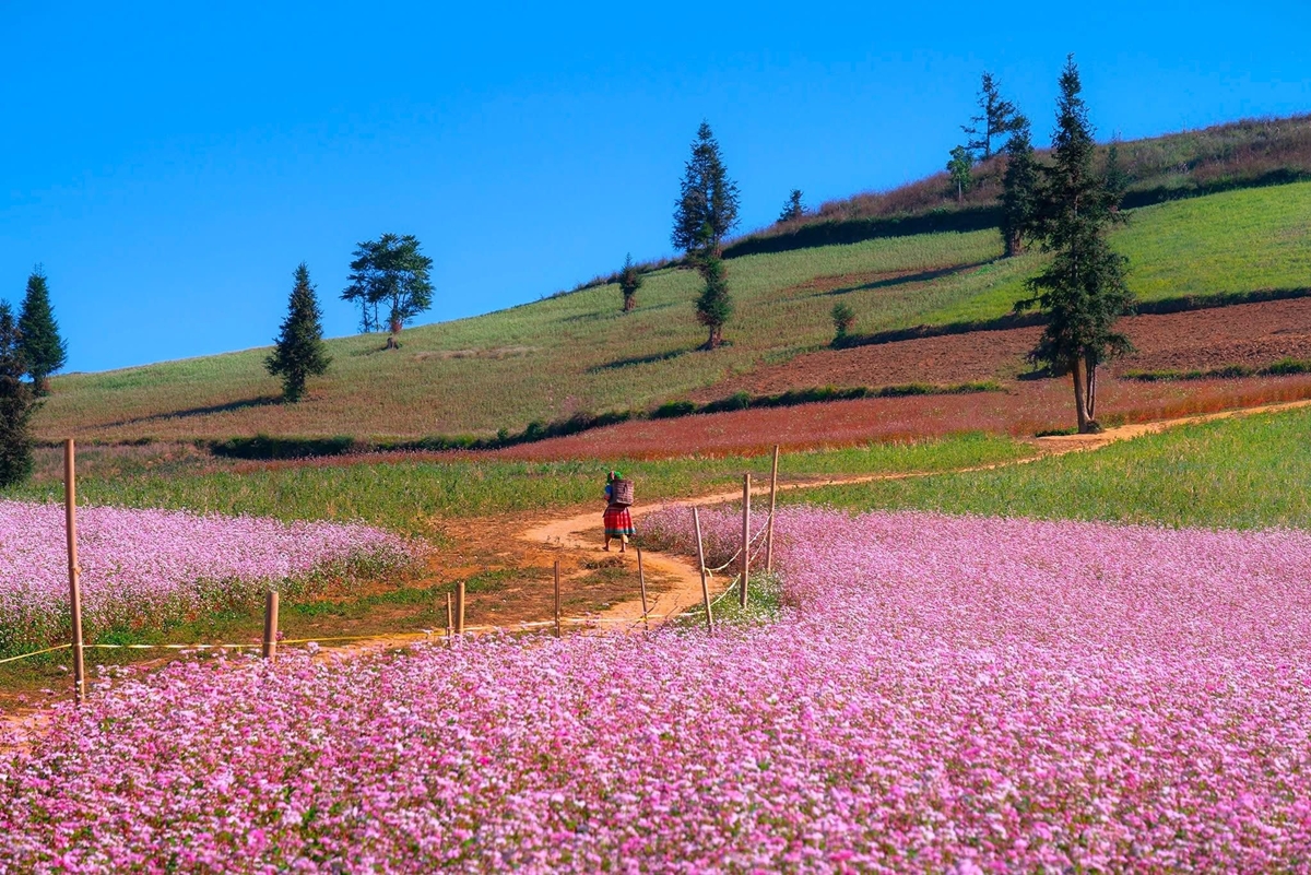 Đặc biệt, cứ đến cuối thu đầu đông, mùa hoa tam giác mạch Hà Giang lại khiến bao du khách say đắm. Những thung lũng, triền núi như khoác lên mình tấm áo hồng tím lãng mạn, tạo nên bức tranh tuyệt sắc mà ai cũng muốn một lần chiêm ngưỡng.
