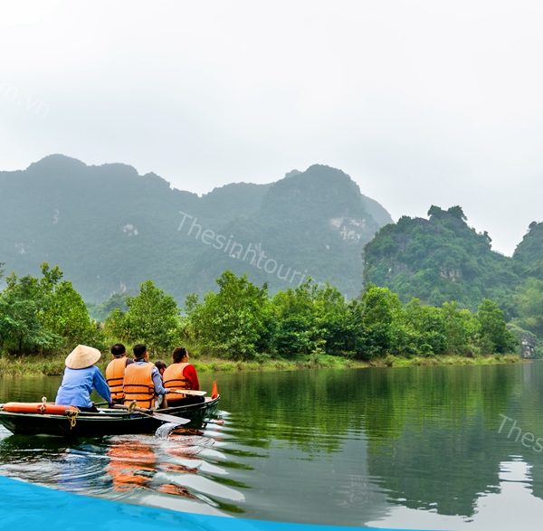 14h00: Quý khách lên xe đến thăm danh thắng Tràng An xuống thuyền xuôi dòng Sào khê uốn lượn dưới chân những dãy núi đá vôi sừng sững,cao vút tầm mắt, quanh các rừng nguyên sinh và rừng lau. Đi qua 4 hang chính với những cái tên rất lạ như: hang Lấm, hang Vạng, và hang Thánh Trượt,hang Đại.… du khách sẽ được trải nghiệm thưc thụ cảm giác hồi hộp khi thuyền tiến vào lòng hang sâu thẳm, chiêm ngưỡng hình thù kỳ lạ của những nhũ đá trong hang và hòa mình vào khung cảnh thiên nhiên nơi đây.